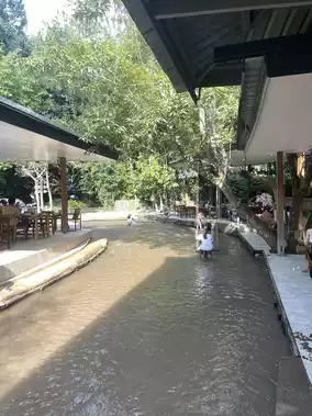 Where cool water flows beneath the tables, you can actually dip your feet! 💧