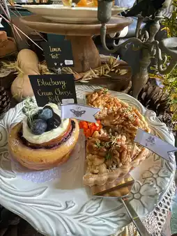 The highlight is their freshly baked pastries and baked goods daily — including Apple Pie, Chocolate Tart, Lemon Cheesecake, Pumpkin Choux, and Cinnamon Roll.