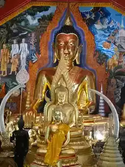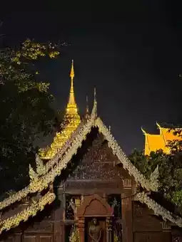 The temple complex houses a Chiang Saen-style chedi containing the Buddha's relics. The grounds also offer a panoramic view of Chiang Mai. 🤩🙏✨ The annual Tiao Khao Doi festival is also held. 🥳⛰️🎉