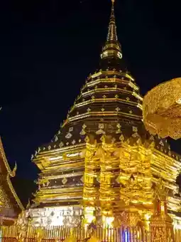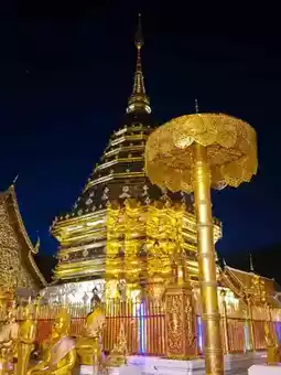 Wat Phra That Doi Suthep is an important and beautiful temple in Chiang Mai. It is the sacred chedi for those born in the Year of the Goat. The entrance to the temple is a seven-headed naga staircase with 306 cement steps. Alternatively, you can take the electric tram. 🙏✨🏯