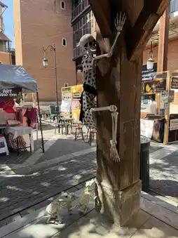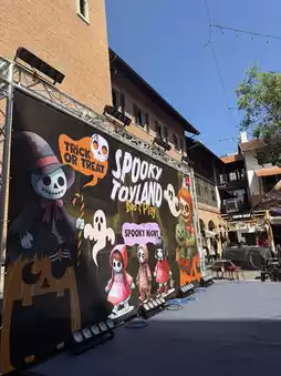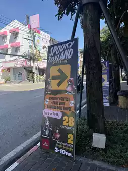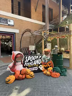 Anyone visiting Chiang Mai during this time, stop by One Nimman. They're decorated for Halloween! We visited early in the morning, and there weren't many people yet, so not all the restaurants were open yet. But it was still a great place to take photos. There are many corners, and the restaurants in the complex are also decorated. There's a haunted house and games to play. The event runs from October 28th to November 2nd. It's worth stopping by to take photos.