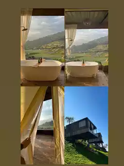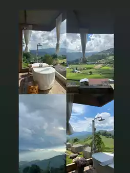During our visit, it was the late rainy season, and we experienced some rain, which made the atmosphere incredibly pleasant. The property features 10 rooms, with options for rooms with or without bathtubs. Our room had a bathtub, perfect for taking stunning photos with breathtaking views. The serene natural surroundings, free from other houses obstructing the view, offer a 180-degree panorama of mist and rolling hills. It's the ultimate retreat for those needing a break from their busy lives.