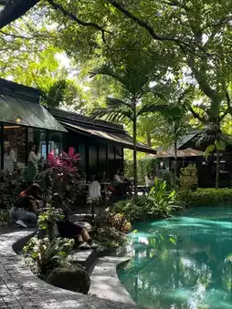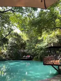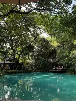 On a clear and pleasant day in Chiang Mai, there's nothing better than relaxing at No.39 Cafe, a charming cafe tucked away not far from Wat Umong 🌿. This cafe stands out with its concept of being surrounded by nature, offering a serene and cool atmosphere with large trees all around. The highlight here is a large blue pond in the center of the cafe, where the water beautifully reflects the sky, creating a refreshing view that makes you want to grab your camera and snap photos everywhere! 📸