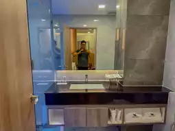 🛏️ The rooms here are elegantly designed with wood and white tones, creating a warm, modern atmosphere. They come with complete amenities such as free, fast Wi-Fi, a refrigerator, a flat-screen TV, and a very comfortable bed.  Plus, they offer free parking and an outdoor pool. It's a great value for the price. ☺️