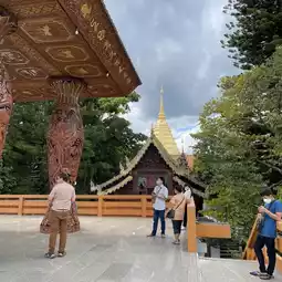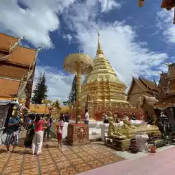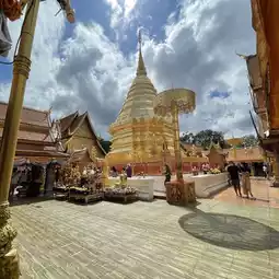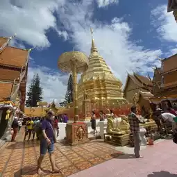 Today, we will take you to Wat Phra That Doi Suthep, a temple located on a high mountain near Chiang Mai city. Looking down, you can see a beautiful view of the city. It's like a famous viewpoint abroad (but not 100% like Chiang Mai with tall buildings like that). But it's beautiful in another way. You get to make merit and enjoy the view, which is quite worthwhile. Wat Phra That Doi Suthep has a point where you can walk up and take a tram up. It costs 20 baht up and down, which is not expensive at all. For those who love merit and nature, I recommend it. It's very beautiful. #VisitChiangMai #DoiSuthep #VisitThailandLikeGoingAbroad