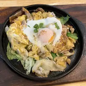 🔸Chicken Stir-fry Noodles with Egg on a Hot Plate