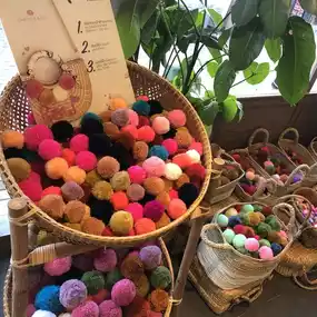 'Camellia & Co.' You can make your own initials, and you can make and purchase your own rattan bag with pom-poms! They also run a cafe, so