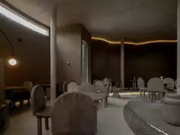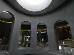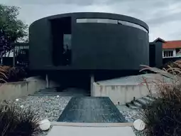A super cool cafe that looks like it came out of this world. With its cutting-edge architecture, the interior is decorated in round rooms in black, gray, and beige tones. There is a chimney in the middle that lets in natural light. I've never seen a cafe like this before. But the light inside is very dim, and on a cloudy day like the one we went, it's very difficult to take pictures. But it's also beautiful and worth exploring.