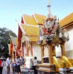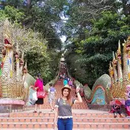 🌸 It is a beautiful and important temple in Chiang Mai. There are 306 steps to climb up. It is easy. If you want to climb up, you should get fit, but it is not very high. However, you must bring water and smelling salts.