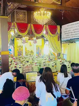 Wat Doi Kham is located on a small hilltop in the Doi Kham area, approximately 200 meters above sea level, in Mae Hia Subdistrict, Mueang Chiang Mai District. It is an important ancient temple with a history of more than 1,300 years since the Hariphunchai period. It is the location of the Phra That Doi Kham pagoda, which contains the relics of the Lord Buddha. It is considered another sacred object of Chiang Mai, where tourists and Buddhists continuously come to pay homage and ask for blessings.