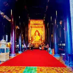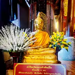The highlight of this temple is the most beautiful and complete viharn. The building is made entirely of teak wood in the Chiang Saen style, with beautiful carvings. Inside the Viharn Ho Kham Luang is the principal Buddha image of Phra Chao Pan Tao, a Lanna-style Buddha image, which is the principal Buddha image in the viharn.