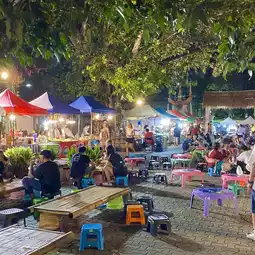 If you travel to Chiang Mai in northern Thailand, you must visit on Sunday! This is because you must visit the Sunday Market held on the streets of Old Town every Sunday. The market, which blocks all vehicles entering Old Town, is much larger than you think, so you need at least 3 hours to fully enjoy it. I also visited the Sunday Market every Sunday while staying in Chiang Mai for 2 months. I was always excited by the crowded and hot atmosphere. There is a separate food street, and just looking at it makes my mouth water, so make sure to go hungry!