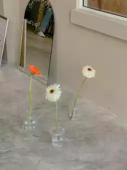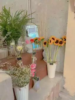 🫶🏻 This newly opened cafe in an old building in the Chang Moi area is decorated in cream and gray tones. 🌟 The highlight is that they also sell flowers🌷! 💫 Super cute and sweet. The open-air cafe relies on the outside light, but it's incredibly beautiful for photos.