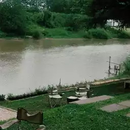 🪑 The decoration of the shop has parking for about 4-5 cars. It is divided into zones: inside and outside. The inside is in a simple style. The outside is divided into 2 steps: tables upstairs and tables by the river. The distance between the tables is quite a lot.