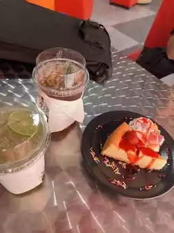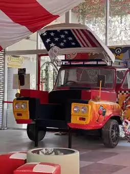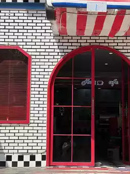 A retro 90's American style cafe decorated in red and white tones, with plenty of photo spots, whether in front of the shop or inside the shop. The shop has 2 floors and is located in a fitness center. Dressing in a y2k style is very suitable.