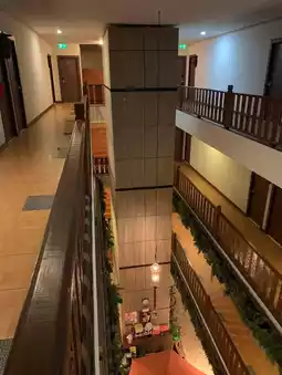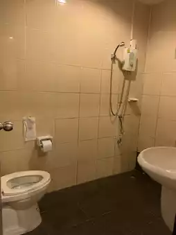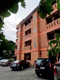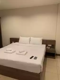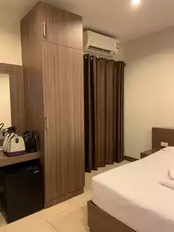 The accommodation is located a bit down an alley, easy to find. Parking is available. There's no elevator, but a 500 baht keycard deposit is required. There's a balcony at the back where you can hang your clothes. The TV has clear picture and sound, and the air conditioning is cool. The water is good. The bed is comfortable. There are no chairs in the room. The reception staff are friendly and helpful. The room and bathroom are clean.