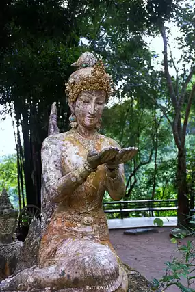 Wat Phalat (Sakidakami) comes from the word "Phalerd" because many people who followed elephants along the waterfall stream and slipped and fell. Some say that elephants also slipped. When the temple was established, it was named after the waterfall. The name of the temple appears in documents, legends and chronicles. It has a history with Phra That Doi Suthep. It is recorded that during the reign of King Kue Na, he brought the relics that Phra Maha Sumana Thera brought from Sukhothai and invited them to sit on the back of an elephant to be enshrined at Doi Suthep when he stopped by the area of Phalat. It was originally an abandoned temple. Later, it was renovated and restored on March 2, 1981, to restore its status as a temple and a place for meditation. Inside the temple, ancient sites, which are the intellectual heritage that our ancestors built, such as the relics, the temple, and various other structures, are still preserved. Long-standing legacy