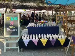 “Kad Ba Pao” means “coconut market”. The format of the market is a community market for tourism in a coconut garden. This coconut garden is a real coconut garden, similar to the coconut gardens in Amphawa. This unique atmosphere is considered the selling point of Kad Ba Pao.