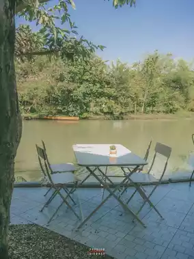 🏕 The atmosphere of the shop is very chill. The shop is located next to the village lake, so there are both indoor and outdoor seating areas to choose from. There are also photo spots.