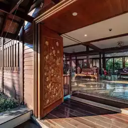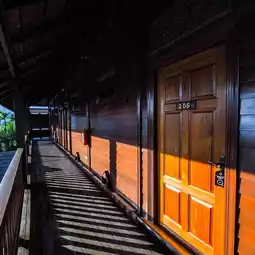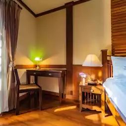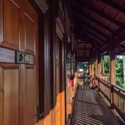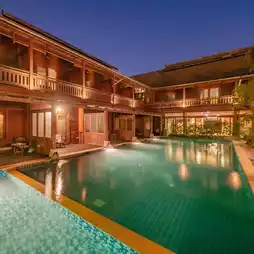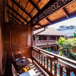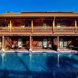 An ancient wooden house with only 14 rooms, divided into Pool access rooms and Pool View rooms. Small but quiet even though it is only a 10-minute drive from the airport.