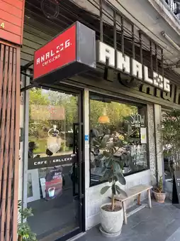 Analog Cafe is a cafe next to a photo and film developing shop. There is a connecting door. The shop is located near Chiang Mai Gate, Ku Muang area.
