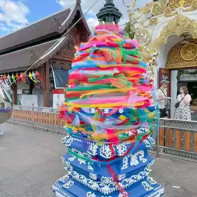 Sao Inthakhil or Chiang Mai City Pillar Shrine, women are not allowed to enter. There is a large rubber tree here, which is a city symbol, looking formidable. As for the Chedi Luang, even though it collapsed from an earthquake almost 300 years ago, just the base of the chedi is magnificent. Imagine how magnificent the complete chedi would be. Please come visit.