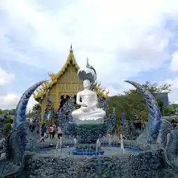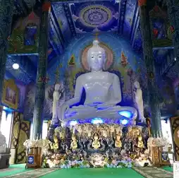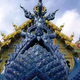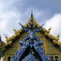 Wat Rong Suea Ten is located in Rong Suea Ten community, Rim Kok sub-district, Mueang district, Chiang Rai province. Admire the beauty of the blue chapel, built in the applied Thai art style with unique beauty from the creation of Mr. Phutta Kabkaew or Salanok, a local artist from Chiang Rai who used to be a student of Ajarn Chalermchai Khositphiphat. It is a unique applied art using shades of blue and sky blue contrasting with gold. The various patterns flow, especially the Naga staircase sculpture that uses the same shades of color, which is graceful and has patterns that are clearly different from general sculptures.