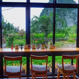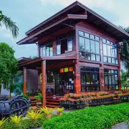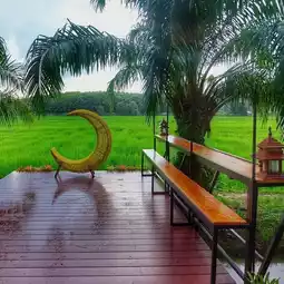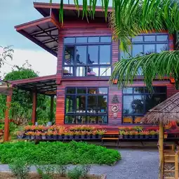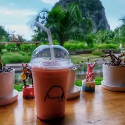 Today, we will take everyone to a cafe called Palm Sila Coffee, which is a cafe just like its name suggests. The owner of the palm plantation has a large area, so he turned his palm plantation into a cafe. When he did it, I must say that the shop is very beautiful, everyone. Plus, the atmosphere is next to the rice fields and mountains, making it look very natural. I must say that this shop is very beautiful for taking pictures. People who like taking pictures should not miss it. The food and drinks here are very cheap, we must say. The prices are accessible to all groups of people. The atmosphere of the shop has many zones, whether it is the riverside area under the palm trees, the hut zone next to the rice fields, or the glass room with air conditioning and watching the mountains. Let me tell you, this shop has many zones to choose from, you will never get bored. When you come to Chiang Rai, try to stop by here at least once.