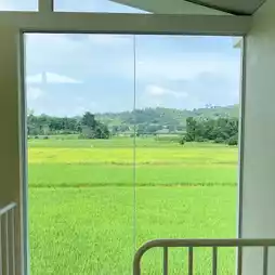 Let's drive out of Chiang Rai city. Relax with soft music while traveling to sip coffee and find something that makes us comfortable and happy on the way to the coffee shop. Today, I will take you to Lilhouse.cafe. The color tones of the cafe, including the textures both inside and outside, make it comfortable to the eyes. I may not be able to describe the feeling, but I might say that it is "so soothing". Contrasted with the green of the rice fields around the cafe, the natural feel is full. As for this drink, I must say that it is very delicious. There are many to choose from. The price is not expensive. Just sitting and sipping coffee, looking at the nature around me, I feel that today I have lived my life to the fullest.