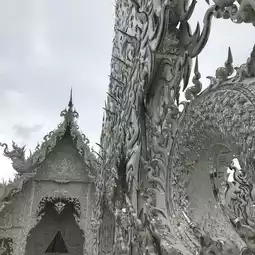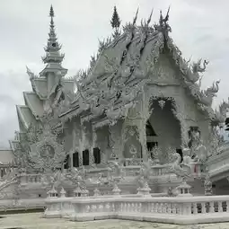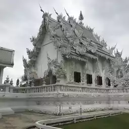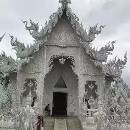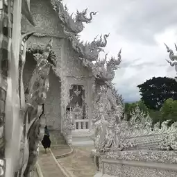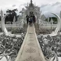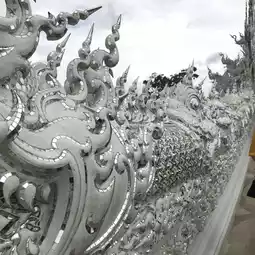 What is very different from traditional Thai temples is that it uses plain white as a base😬 silver mirror inlaid edge😳 The reflected sunlight☀️ seems to symbolize the purity and wisdom of Buddha😎