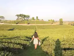The cafe has two sides. I recommend going in the morning or evening because during the day, the sun is very hot. The tea plantation is very spacious. It is very enjoyable to walk around. You can also try picking tea leaves. Most importantly, you will enjoy taking pictures. ; )