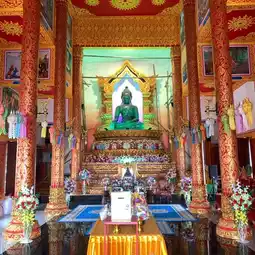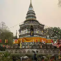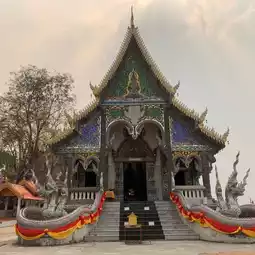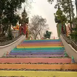 Wat Phra That Doi Khao Kwai or another name is Wat Phra That Doi Khao Kwai Kaew is a temple located on a mountain in Mueang District, Chiang Rai Province. It is an old temple where many people come to worship. It is old and beautiful. On the top of the mountain is a viewpoint for viewing the scenery around the city of Chiang Rai Province. An interesting point is that there are pastel-colored stairs leading up to the temple. Traveling by private car, come via San Khong Luang Road or come via the old airport.