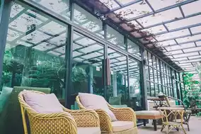 A cafe by the Kok River surrounded by nature, modern style, emphasizing transparency with glass