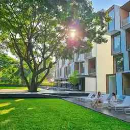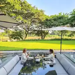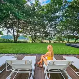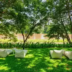 Designed in a modern style, combining the perfect differences of Lanna architecture. There is a garden area along the riverbank and large trees for shade. There are bean bags to sit in the garden. This corner is my favorite. I feel very comfortable and peaceful.