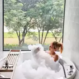 🔸For the room that Wan stayed in, the Deluxe River View, the room is very spacious. Inside the room, there is a sofa set, bed, and pillows. It is very comfortable to sleep on. The bathroom is also spacious with a bathtub by the glass. You can soak in the bathtub and enjoy the view.