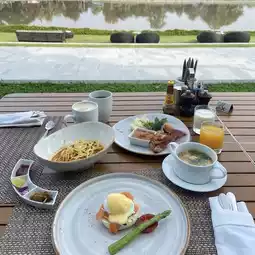 Breakfast has a variety of international food, Thai food, northern food, very delicious. There is also food for people with gluten allergies. Really pay attention to every detail. The swimming pool is beautiful and spacious. Take your mother to walk, see the garden and see the view of the Kok River. It is very natural. Here there is also a spa, a meeting room, a restaurant and a bar in the evening