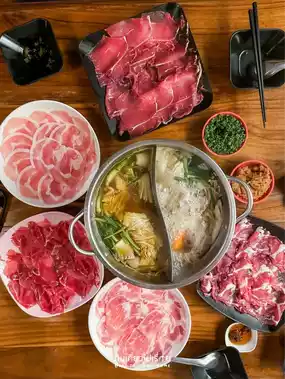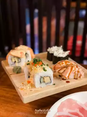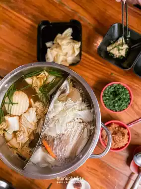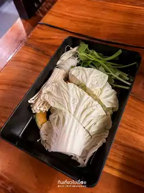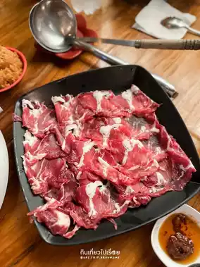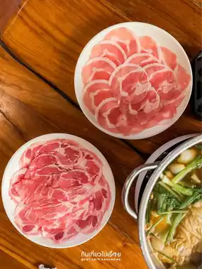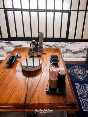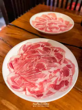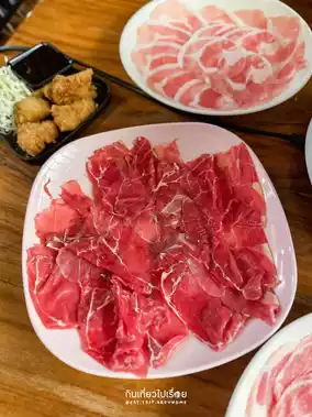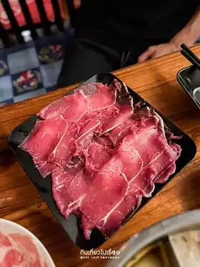 #ChiangraiTravel Shabu buffet that serves 1 menu as much as 3 other places😂 It's a restaurant that I went to without thinking. I saw that it was a shabu restaurant that looked interesting, so I drove over. It seems that there are 2 branches of the restaurant. This branch is near the bridge over the Kok River. You can park in the alley next to the restaurant. We went in the evening. There weren't many customers in the restaurant. The atmosphere is decorated in Japanese style. The seats are large tables on the floor, giving a different feel.