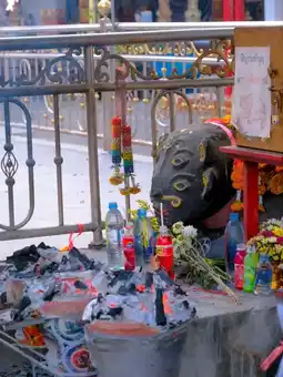 The temple provides flowers, incense, candles, and charcoal for worship. You can also rub your hands and make gestures like you are putting the gold at the bottom of the four-eared, five-eyed deer in the pocket of the worshipper, as if you are taking the fortune (gold) back with you.
