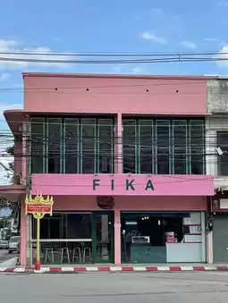 Fika Cafe is a cute cafe located opposite the Chiang Rai Clock Tower, Mueang District, Chiang Rai Province. It is not difficult to notice. The shop is located on the side of the sweet pink road, prominently located at the clock tower intersection.