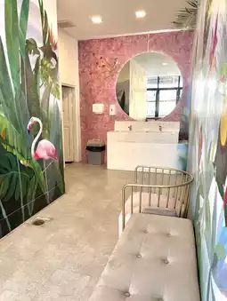 We ordered drinks and cakes, paid, and chose seats. I couldn't decide where to sit because every corner is beautiful. This place is decorated to make us feel like we were drinking coffee surrounded by flowers. The tables and sofas are princess-style. We had a lot of fun taking pictures.
