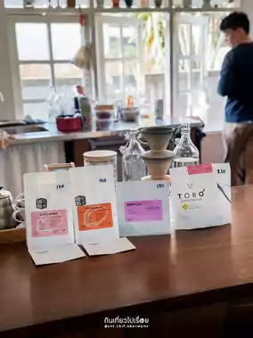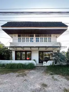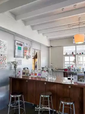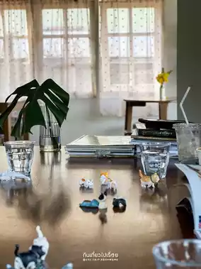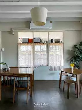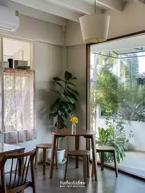 #WinterTravel A cafe in a white house in Chiang Rai Province. The shop is located on the road to Singha Park. The atmosphere inside the shop is very homey. It emphasizes comfort and cool breezes from outside. The shop is decorated cutely. There is a garden corner for those who like to sit and enjoy the natural breeze. There is also a cat to welcome us. It is very tame.