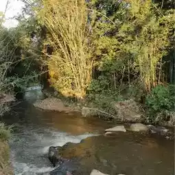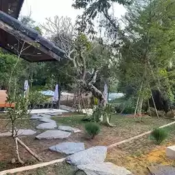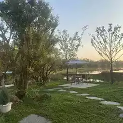 A super chill cafe by the stream, surrounded by nature, rice fields and streams. The light shines through the glass. In the evening after 4 pm, the sunset reflects off the glass very juicy ✨ Sip delicious coffee, drinks and matcha 🍃 with a view of the flowing stream surrounded by trees, comfortable to the eyes. Comfortable seats ☕️ Coffee lovers 🍵 Japanese matcha lovers must not miss it. It is also a place to organize parties.