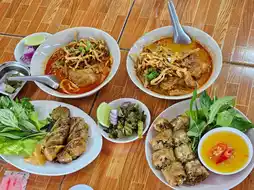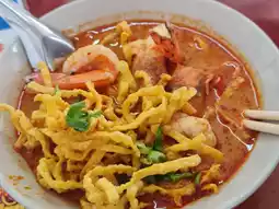 The recommended menu of this shop is Khao Soi with strange toppings that you can't find in other shops, such as Salmon Khao Soi, Sea Bass Khao Soi, Crispy Pork Khao Soi. The taste of Khao Soi is very strong. It is not suitable for people who can't eat spicy.