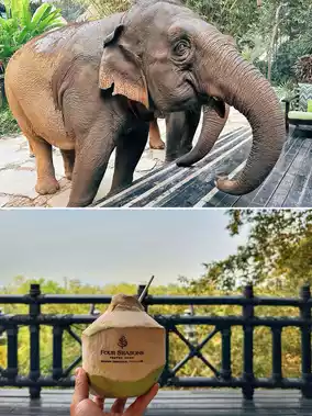 The hotel also has a riverside picnic and cheese & wine tasting before sunset. It's a wild luxury and comfortable holiday time. The area where the Four Seasons in the Golden Triangle is located also has a dozen or twenty elephants. Watching elephants stroll in the early morning, or having breakfast with elephants in the hotel's breakfast restaurant is also a very special experience! The Four Seasons Tented Camp, with its wild luxury and exquisite temperament, simple romance and low-key luxury, perfectly interprets the elegant country hunting style!