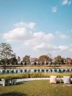 Impressed with the thoughtful design of the place that accommodates kids, elders, and handicapped. It's very parky with trees and a big emerald pond. Food is quite a variety with, again, thoughtful design. It gives the feeling of having Bangkok food in nature. Weekday seems to be more peaceful