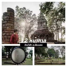 1. The first point is "Wat Pa Sak". If you want to see the Biennale art in Chiang Rai, you must not miss this place. Because this is the origin of the concept "The Open World" which comes from the Buddha statue in the opening world posture enshrined in the pavilion of the Wat Pa Sak pagoda. The art that we like at this point is the 12 faces of Kala, which is not far from the pagoda... Kala's face or Kiattimuk is a demon that swallows everything, even itself, until only its face remains. The artist put the image of Kala's face on the drum of Sabatchai. The back is engraved with the definition of the elements of the world in 12 languages, separated with 12 pieces of art according to the 12 times.