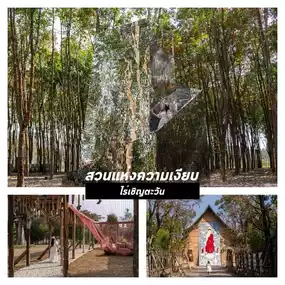 3. Rai Chern Tawan by V. Vajiramedhi. Here, there are many pieces of art that are embedded with Dhamma. For the piece that we like the most is the Garden of Silence, which has 3 pieces of art in the middle of a rubber plantation of 108 trees: