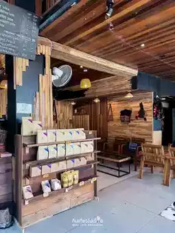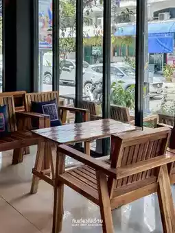 A small coffee shop in a wooden house style in Chiang Rai city.