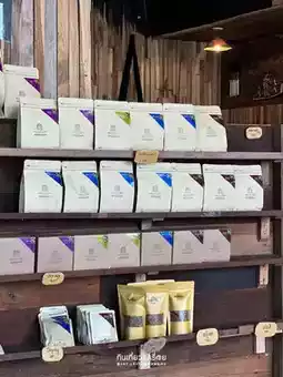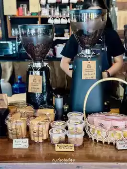 #Songkran2024Travel Find a coffee shop on the way in a hurry. This shop is the closest, so let's stop by. It's a small shop on the corner of the road, opposite the Saen Hotel. We like the decoration of the counter bar. The props are cute. The shop has a 2nd floor. You can go up and sit. Ordered peach coffee. The peach flavor was a bit strong. If you reduce the amount a bit, it should be easier to drink.