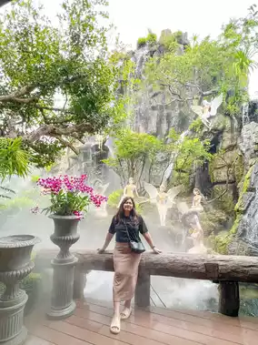 Lalitta Cafe Chiang Rai, a garden-style cafe that is as magnificent as being in the Himalayas because the shop is beautifully decorated, shady, and like being in nature. There are streams, waterfalls, various flowers, and light fog. The atmosphere is very good. There are many seating areas, both indoor and outdoor. The air is cool because the shop will release water mist to reduce the temperature all the time. There are many styles of food and drinks. Most importantly, when you come, you can take beautiful photos from many angles to upload to your story. I recommend that anyone who comes to visit Chiang Rai and visit Wat Huai Plakang, don't forget to stop by and relax and guess the food at Lalitta cafe. 💰Entrance fee: Adults 50 baht / Children 30 baht. Bring your card to use as a discount on food and drinks.